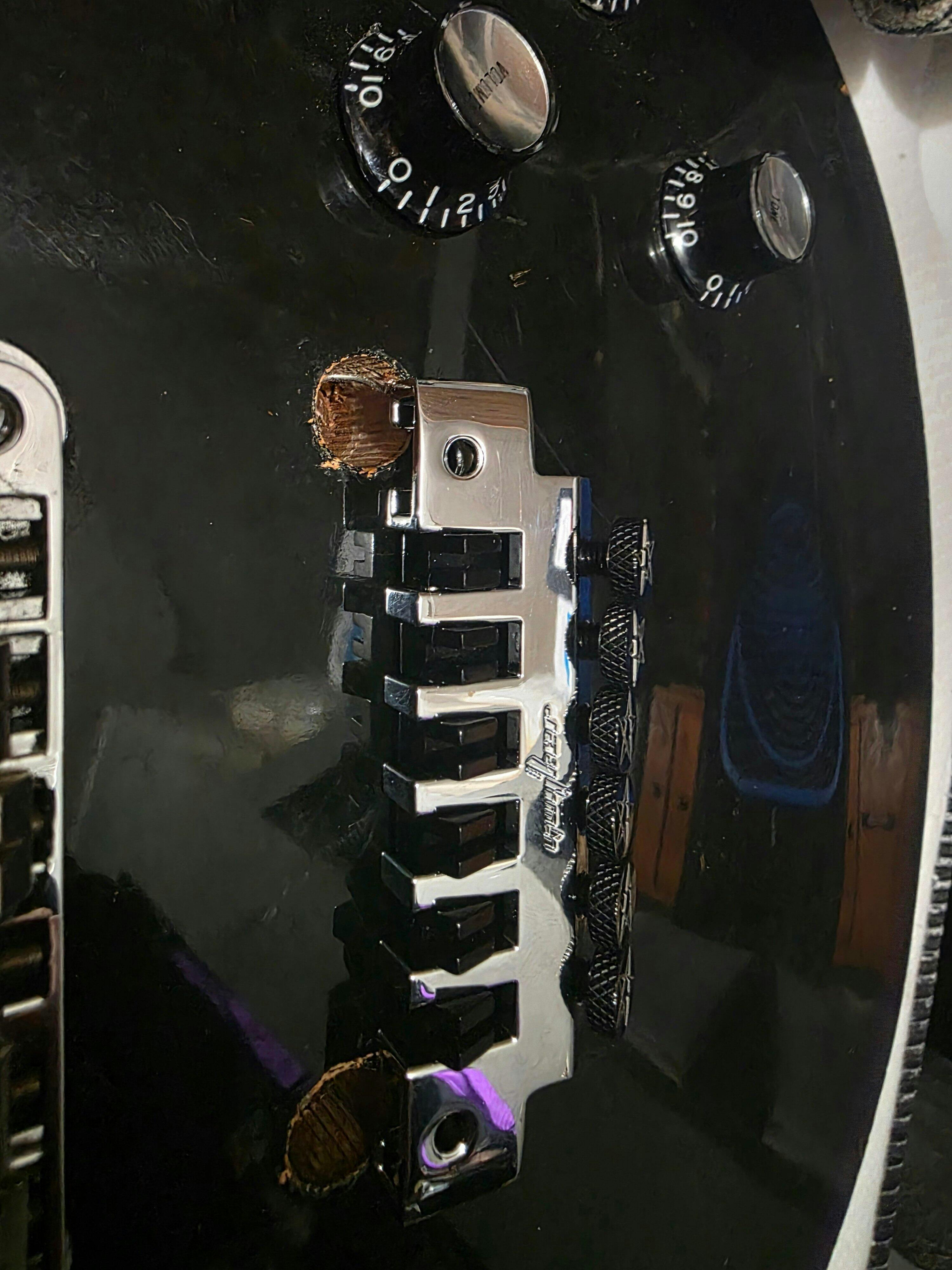 After recently installing new pickups with linished nickel covers in my Firebird Studio, the original chrome hardware just didn’t look right. It was all way too shiny. So, on went a Guyker aged bridge and tailpiece. Really pleased with how they look and the brass bridge saddles are a great bonus too!