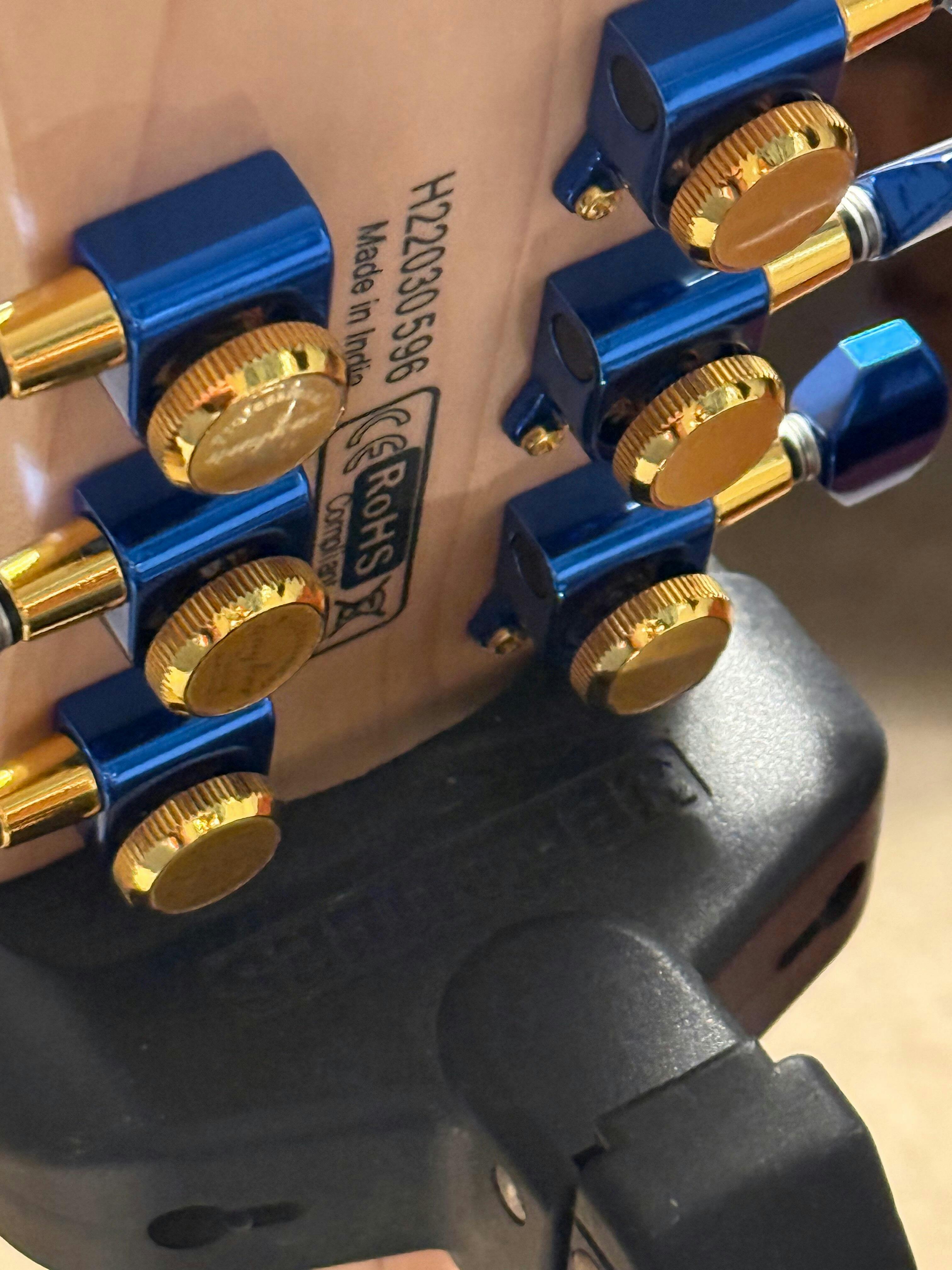 I started with a basic, cheap looking Dean LP look a like. I wanted to get rid of the Black gothic look and convert everything to Gold. With the Blue quilted top I figured it would really bring it to life. So I started with the tuning keys then the Tail Stop, Roller Bridge and 3 way selector switch.