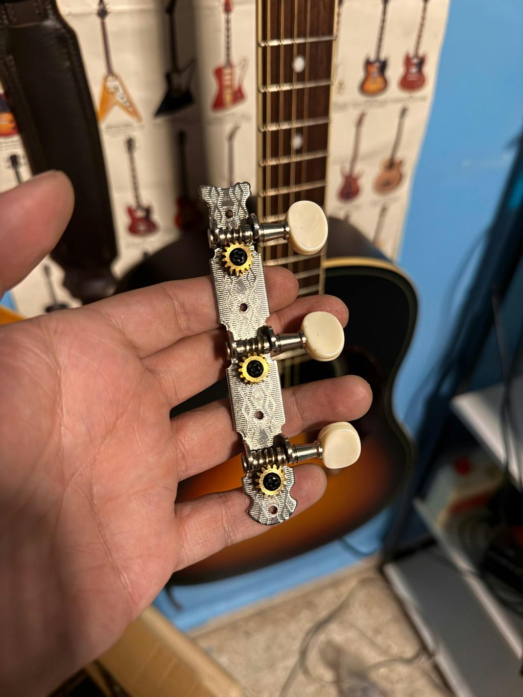 Some photos, fits with my synth pickup. The tuners were also awesome and very fine.