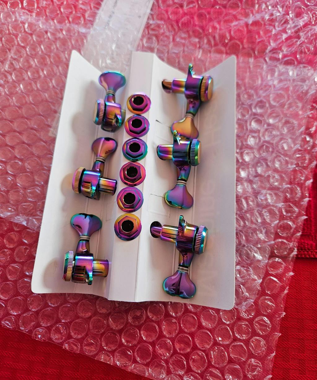 I received my 510D8SP Guitar Locking Tuners (3L + 3R) - 1:21 Lock String Tuning Key Pegs chameleon rainbow. They are exactly what I wanted. Thank you, for sending as quickly as you could. I have what i need to complete my hollow body build.