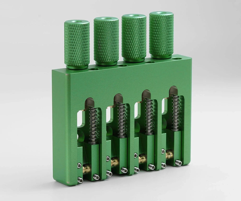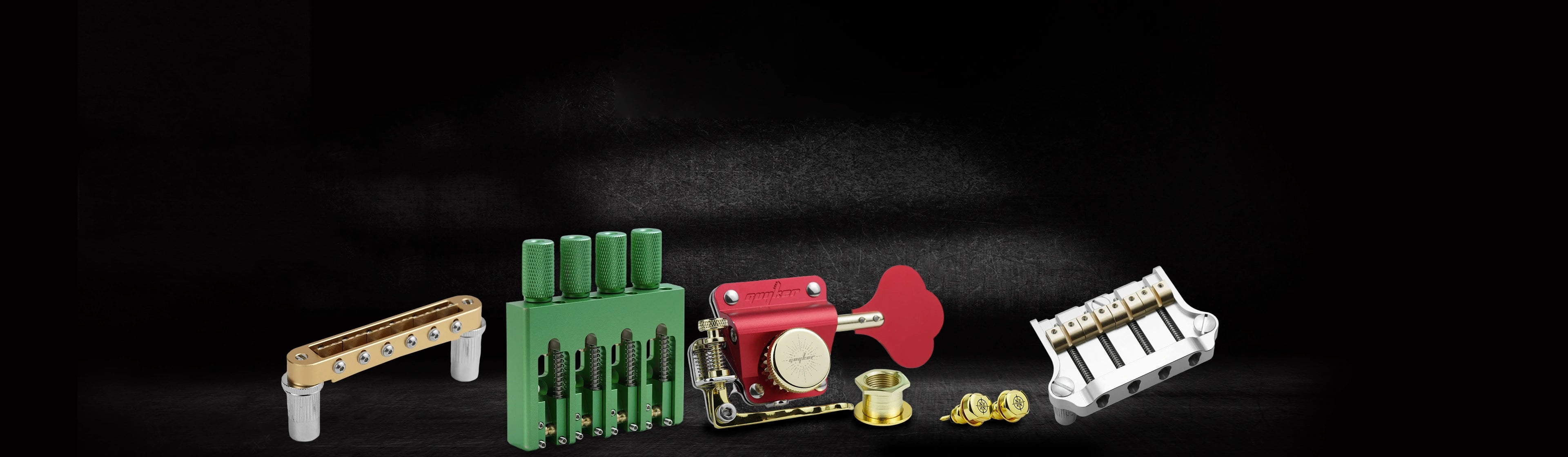 Guyker CNC hardware comes in a range of anodized finishes, including chrome, gold, black, red, green, and grey.