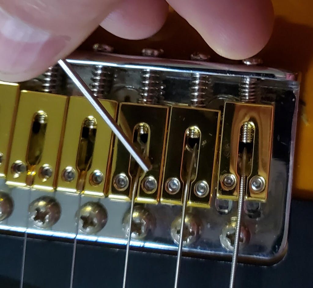 - Apply a small amount of lubricant, such as guitar or instrument-specific lubricant, to the moving parts of the bridge and saddle, such as screws and springs. This helps to ensure smooth operation and prevent excess friction.